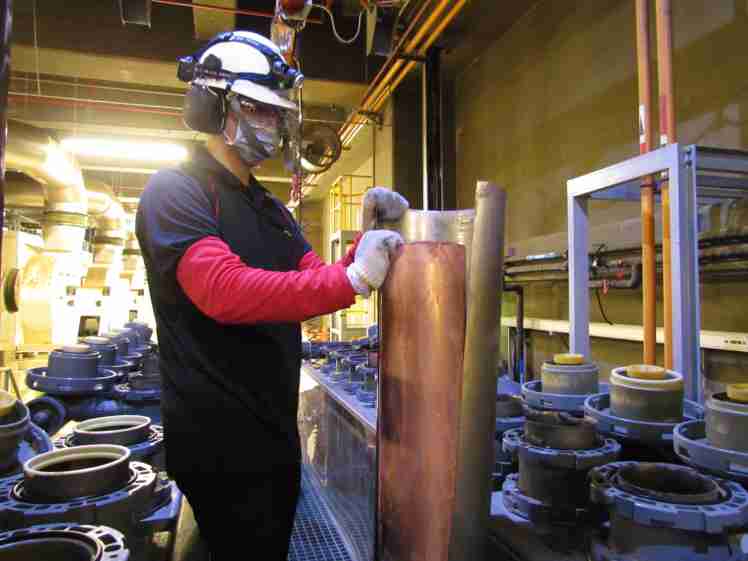 尊龙集团将废弃物转化成有效的工业或民生原物料,,,,图为废铜液淬炼后再制成纯度极高的铜管